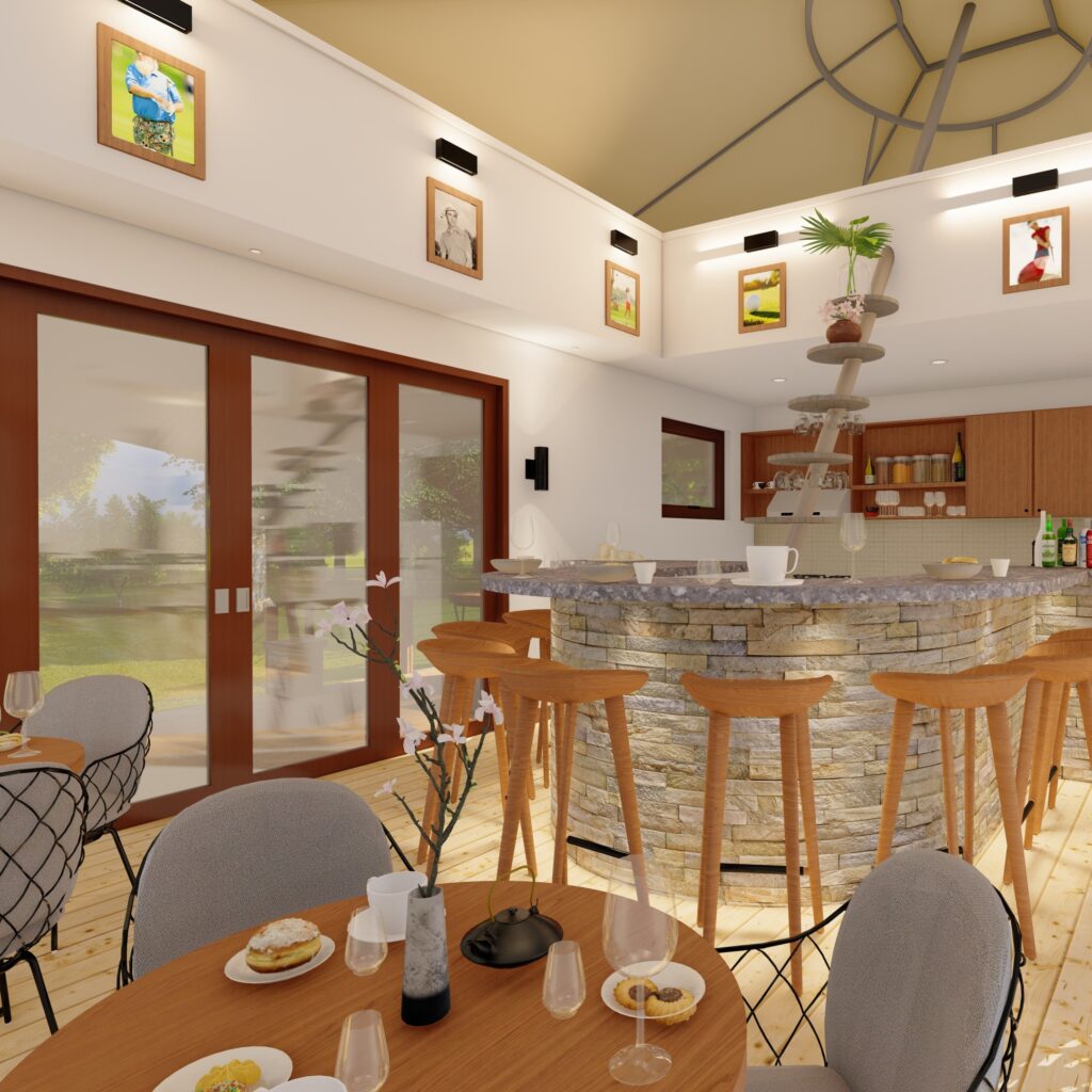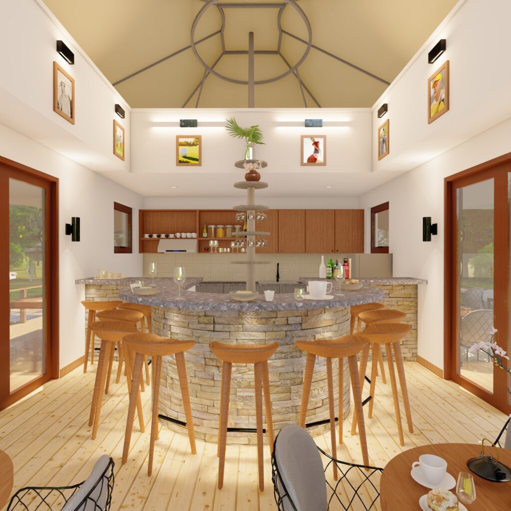 Project:Karen Country Club Halfway HouseClassification:HospitalityStatus:Ongoing Location:Karen, Nairobi CountyProject description:The project is a snack bar and refreshment zone for golfers in between rounds offering space for golfers to sit and relax, have a chat, enjoy the views before proceeding with the game.
